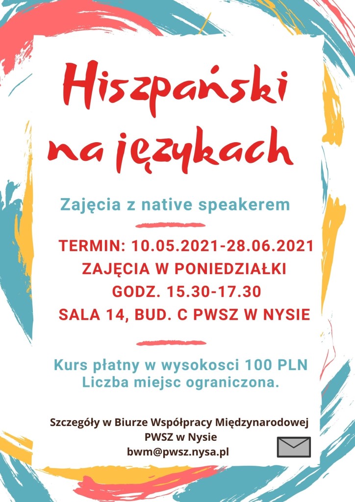 Biuro Współpracy Międzynarodowej PWSZ w Nysie organizuje intensywny kurs języka hiszpańskiego dla studentów pn. "Hiszpański na językach". Kurs poprowadzi native speaker Pan Ezequiel Soriano Freire.