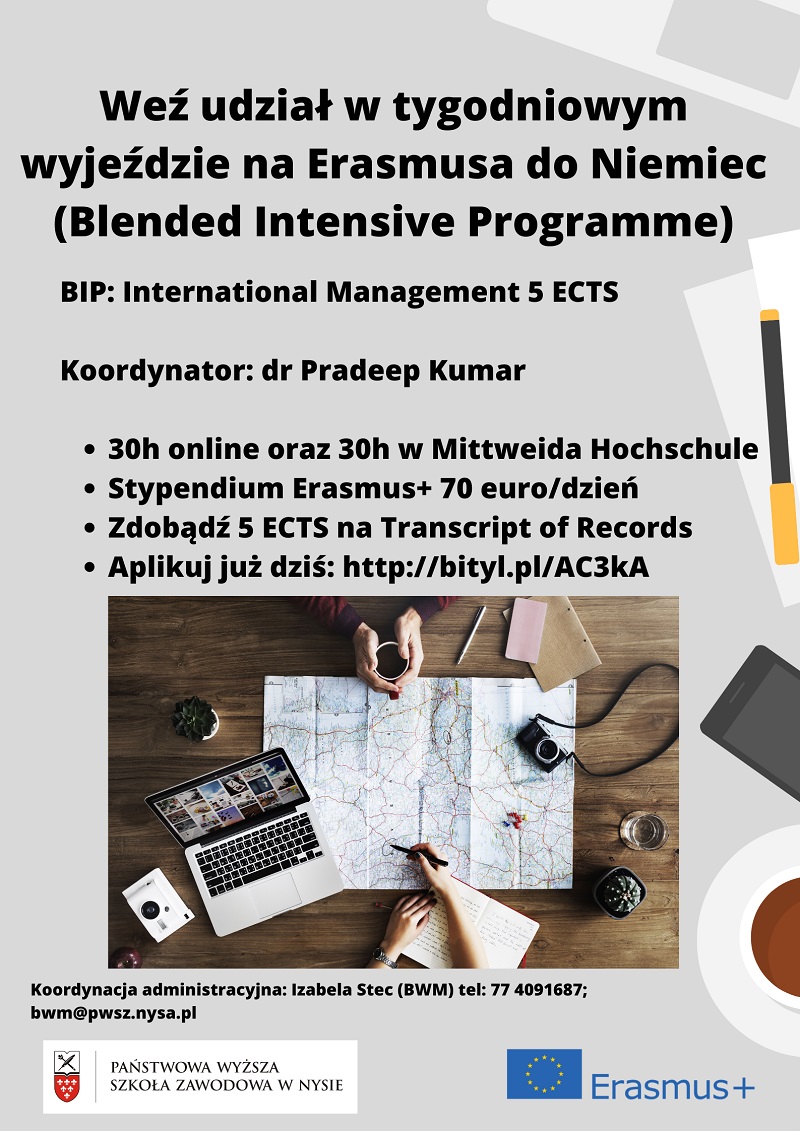 Po raz pierwszy PWSZ w Nysie będzie współorganizatorem Blended Intensive Programme (BIP) w ramach Programu Erasmus Plus. Koordynatorem Projektu jest Fachhochschule Mittweida (Niemcy), a partnerem University of the Basque Country (Hiszpania).