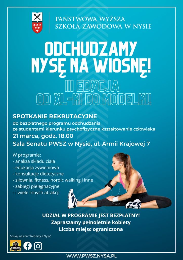 Udział w programie jest bezpłatny. Spotkania rekrutacyjne dla Pań i Panów - 21 marca, godz. 18.00, Sala Senatu PWSZ w Nysie, ul. Armii Krajowej 7. Szczegóły na plakatach.