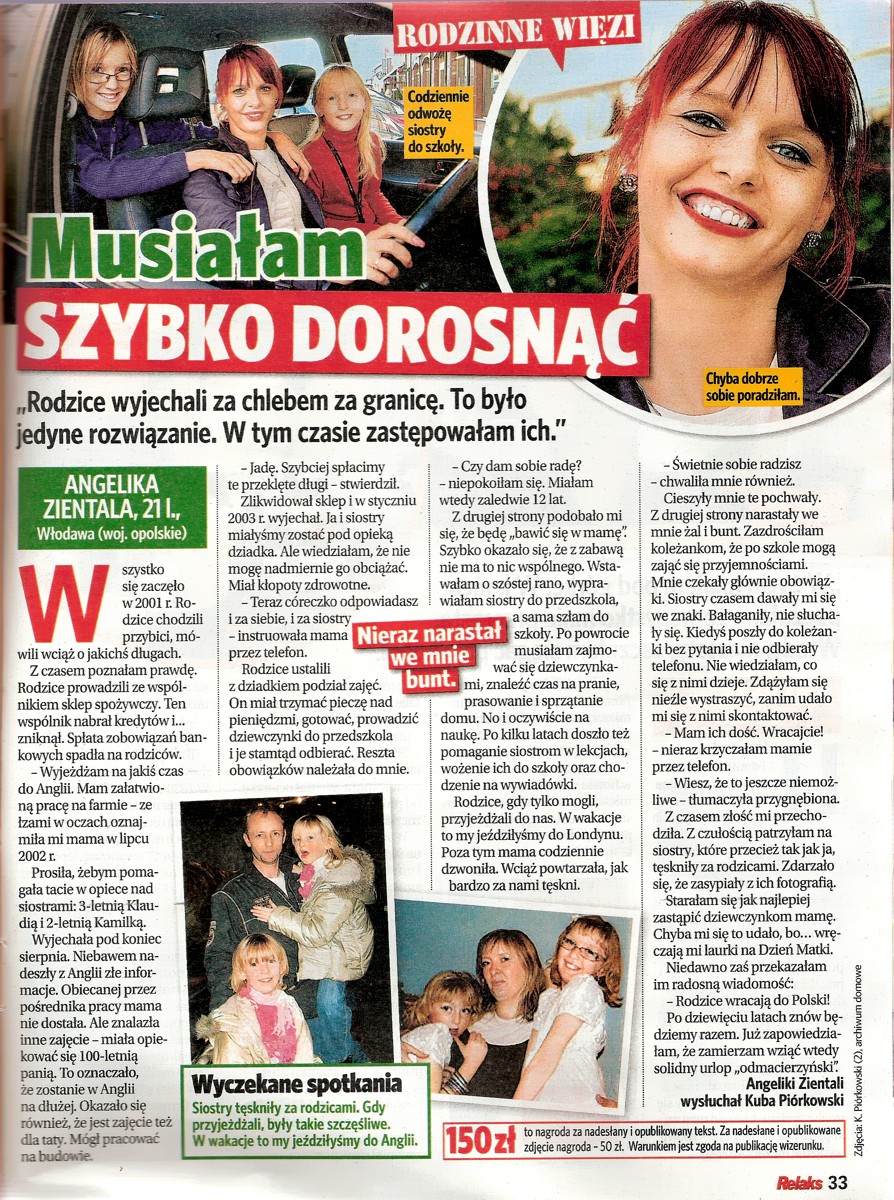Angelika Zientala z 3. roku języka biznesu w gazecie "Bella Relaks"