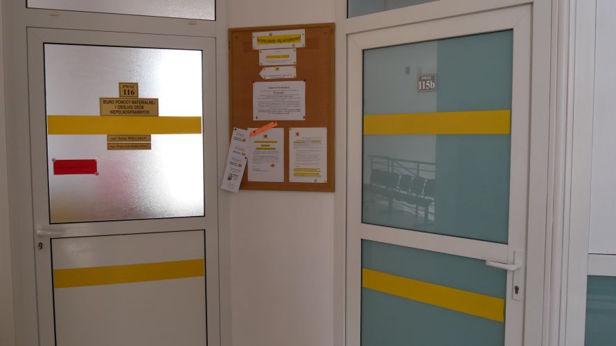 - w Uczelni funkcjonuje wypożyczalnia sprzętu specjalistycznego ułatwiającego dostęp do informacji i zajęć osobom z niepełnosprawnościami (w Biurze Pomocy Materialnej i Obsługi Osób Niepełnosprawnych)
