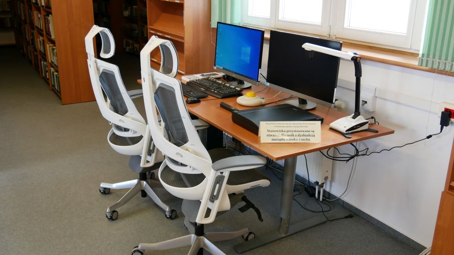 - w Bibliotece stworzono miejsce do pracy dla osób z niepełnosprawnością ruchową i osób słabowidzących