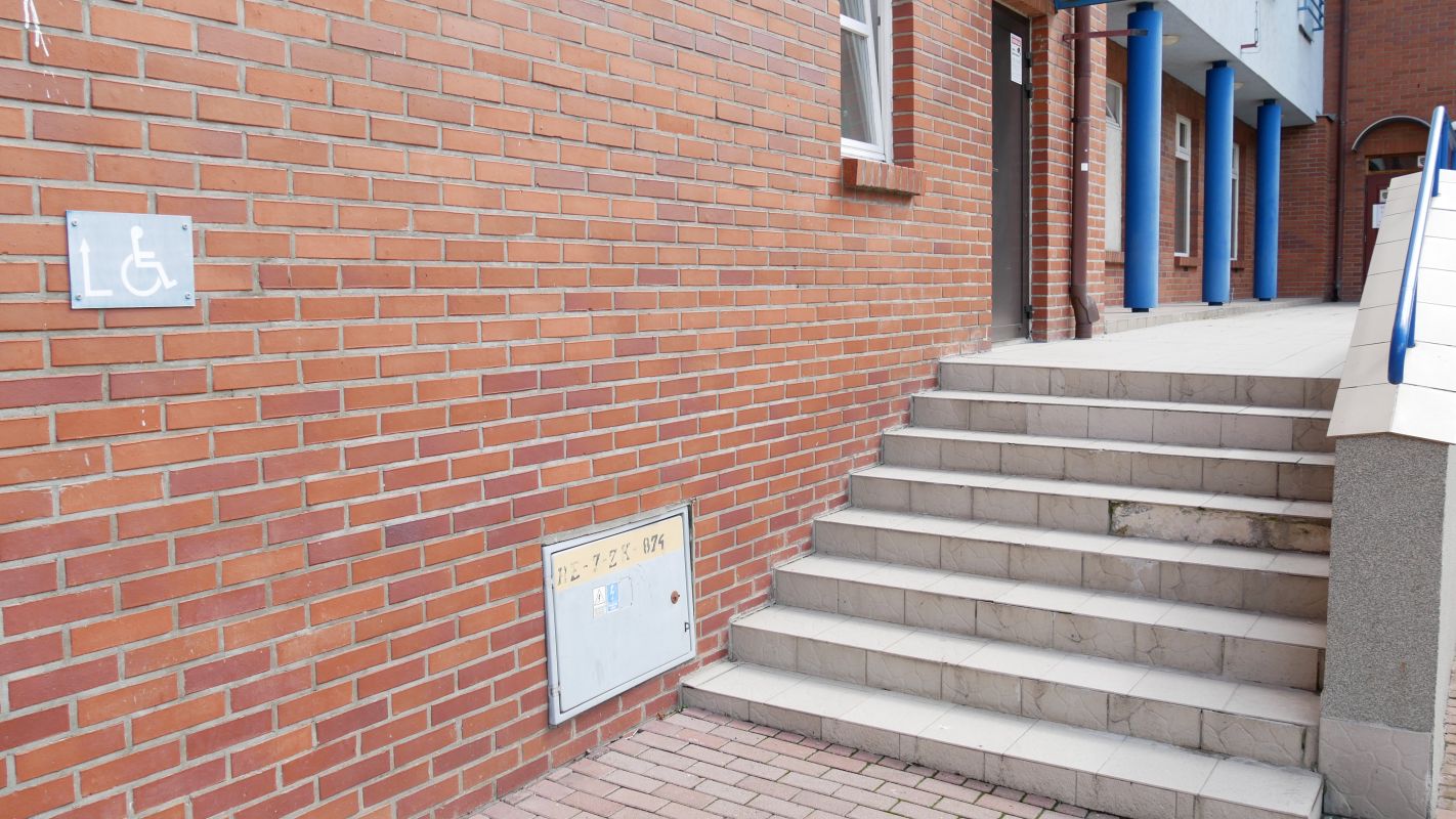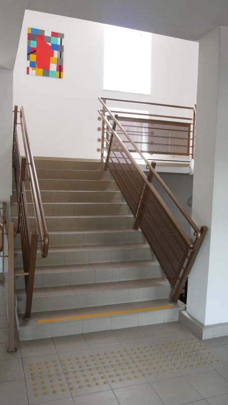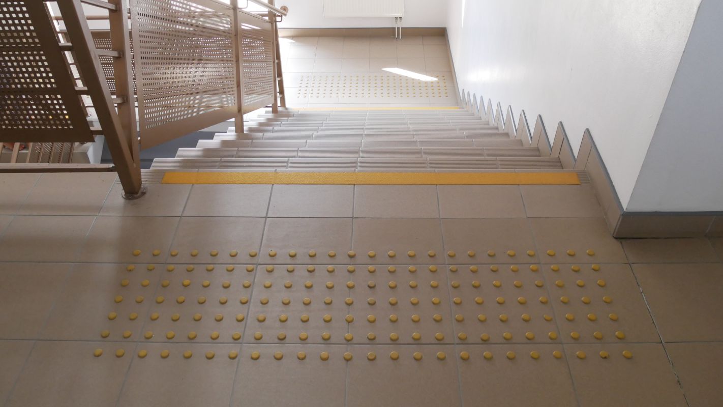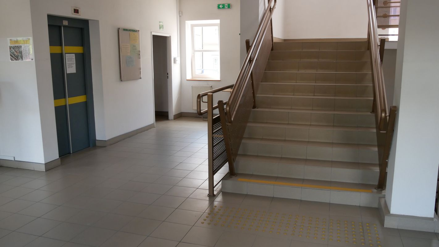 - w budynku gdzie mieści się Biblioteka, oznakowano schody, zastosowano pola uwagi