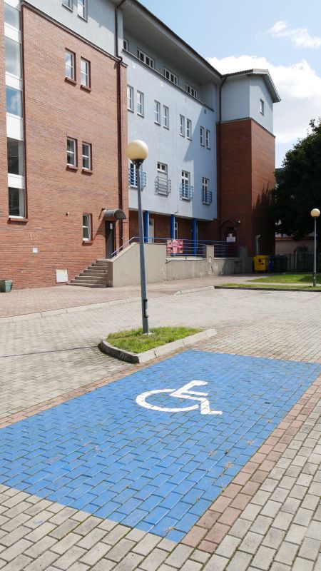 - na parkingach uczelnianych, wydzielone są  miejsca parkingowe dla ON.