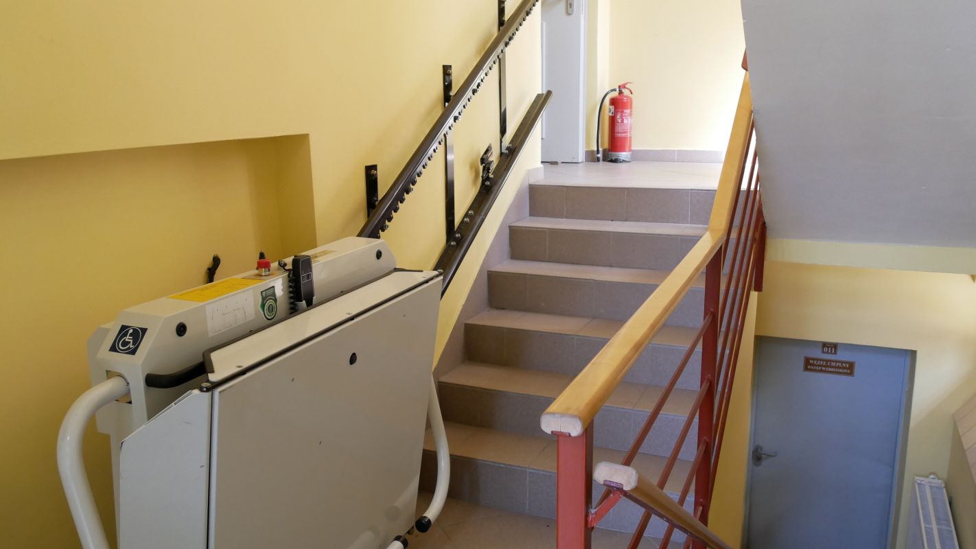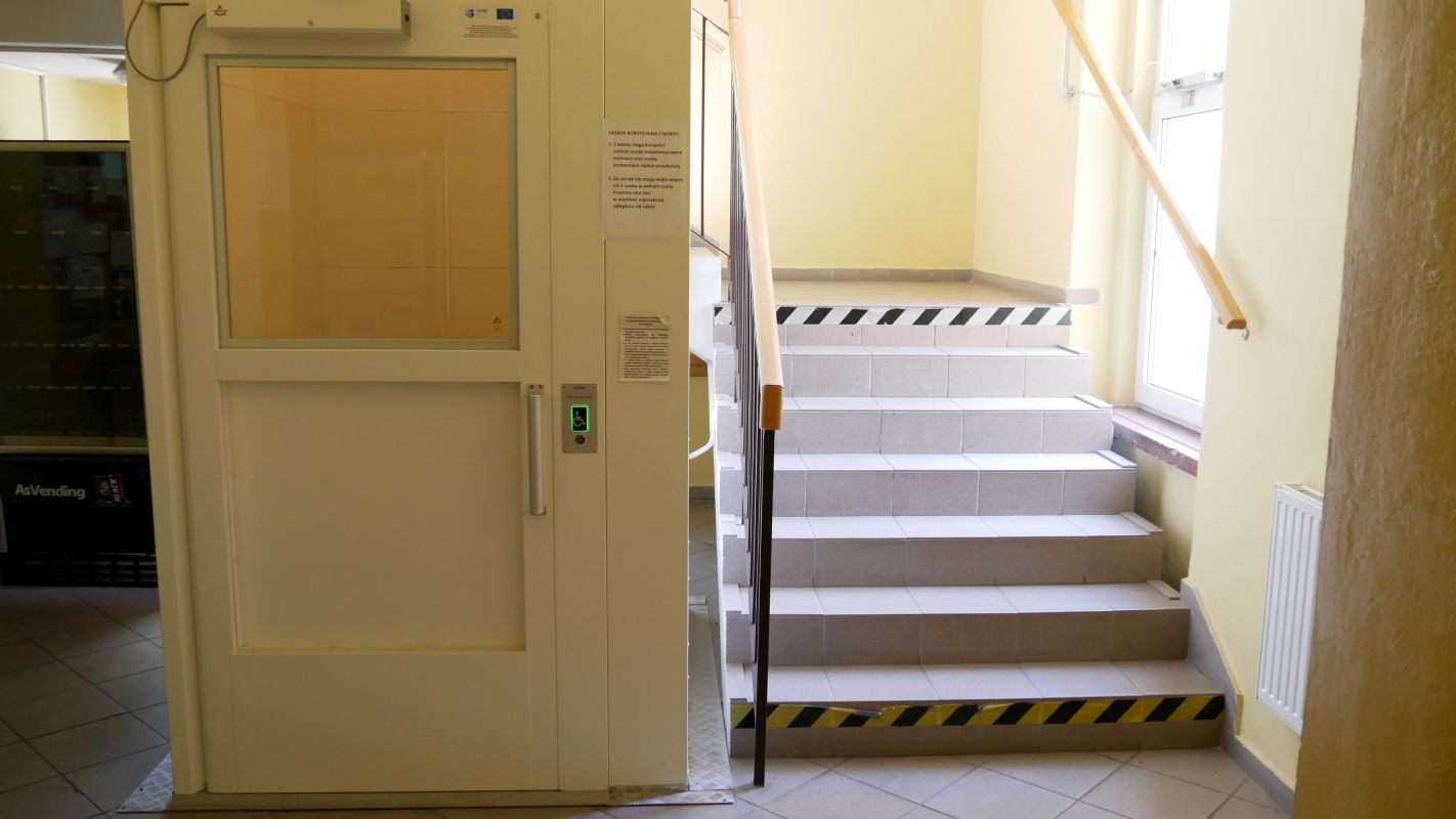 - Uczelnia dysponuje krzesłem ewakuacyjnym jako dodatkową formą transportu (awaria winy, brak prądu, pożar itp.)